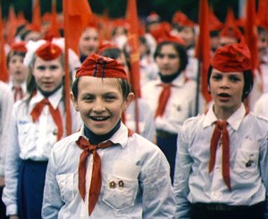 A ma negyvenes évei elején járó oroszországi generáció tagjai még tisztán emlékeznek a hetvenes évek agymosó szlogenjeire, amikor óvodásként az Internacionálét a tévé előtt is felállva énekelték, a világbéke érdekében leveleket adtak fel a gonosz imperialista nyugat fővezérének, Reagan bácsinak, az iskolába pedig mindenekelőtt azért jártak, hogy a dicső Szovjetunió dolgozó népének a munkában élenjáró tagjaivá válhassanak, akikre méltón büszke a párt.[2] Lázadó tinédzserként a rendszer rohadását is látni engedő „peresztrojkás” világban találták magukat, amikor a Vörös téren már nemcsak november 7-én lehetett (azazhogy kellett) felvonulni, hanem a rendszerellenes punk-rock őrjöngés is megengedett volt, miközben az üzletekben egyik napról a másikra kiderült, hogy nincs mivel feltölteni a polcokat. A Szovjetunió ’91-es összeomlásakor érzett eufóriát hamar feledtette a jelcini demokratizálódás nyögvenyelőssége, amikor pedig Putyin ma ismét a középiskolai történelemoktatás centralizálódásának (kilúgozásának?) igényéről beszél az esti hírekben, a film kisgyerekes szülő főszereplői előtt saját gyerekkoruk álságos világa rémlik fel.