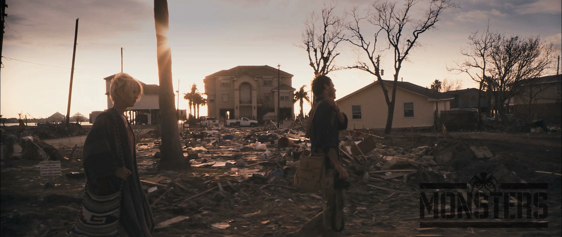 Edwards első nagyjátékfilmjének egyik legimponálóbb vonása ugyanakkor pont minimalista világépítkezése: lényegében a nyitóinzertek, egyes párbeszédek, táblák és feliratok, illetve a játékidő első felében fel-felbukkanó híradórészletek alapján teremti meg a Monsters valóságát, és szinte teljesen nélkülözi az attrakciót. A műfaj megválasztása pedig gyengíti a szerény megvalósítást magyarázó anyagi okot, és erősíti a visszafogottan ábrázolt szörnyes kulissza koncepcionális jellegét: a road movie zsánerének megfelelően a rendező az utazásra és az utazókra fókuszál, így a háttér inkább csak amolyan egzotikumnak tekinthető.