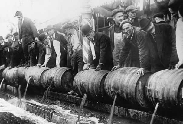 5. A rendőrség az utcára önti a hordók tartalmát. (fotó: Underwood & Underwood, CORBIS)