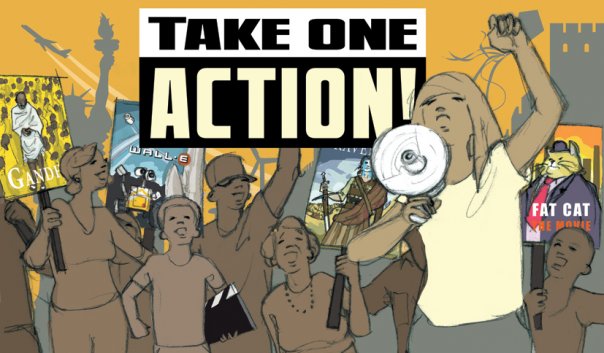 A Take One Action! szeptember 21-én nyitotta meg kapuit Glasgow és Edinburgh városaiban és két héten keresztül vetítette a világ minden tájáról érkező mozgóképeket. A meghívott dokumentumfilmek egyaránt meséltek nemzeti összetartásról (1/2 Revolution; 5 Broken Cameras), a harmadik világ betegségeiről és harcairól (Growing Change, Lucky), bolygónk éghajlatának változásairól (The Carbon Rush, Chasing Ice, Surviving Progress) és a fejlődő országok képmutatásáról is (We’re Not Broke). Az október 2-án véget érő rendezvénysorozat sokban hasonlított a kelet-európai One World Dokumentumfilm-fesztiválra, amennyiben kényes, szociális témákat kerülgetett, és nem kis bátorsággal vetette bele magát a világ perverz kis titkainak feltárásába. Mint látszik, a hasonló rendezvények (Nuremberg, Németország, Incocvinient Films, Litvánia) egyre nagyobb hangsúlyt kapnak a mozi világában, és várhatóan egy grandiózus szociográfiai sziget jön majd létre a nagyjáték-, és dokumentumfilmes fesztiválok óceánjában, amely arra specializálódik, hogy velejéig romlott univerzumunk problémáit a mozi médiumán keresztül boncolgassa.