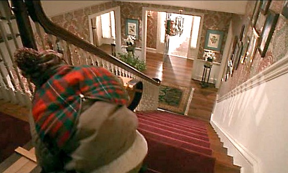 Ez a jelenet gyerekként valószínűleg mindenkinek a retinájába égett, és biztos vagyok benne, hogy van egy-két elvetemült kölyök aki egy szertartásos performansz keretében újrajátszotta a kérdéses részt. Kevés olyan pillanat van a filmben, amikor Kevin gyermeki mivoltában tud önfeledten boldog lenni, hiszen szabadsága első óráiban csupa tiltott, felnőttes dologgal tölti az idejét (előszedi bátyja petárdáit és légpuskáját, „felnőttfilmet” néz, megborotválkozik) majd a betörők megjelenésével családfő szerepbe kényszerül.