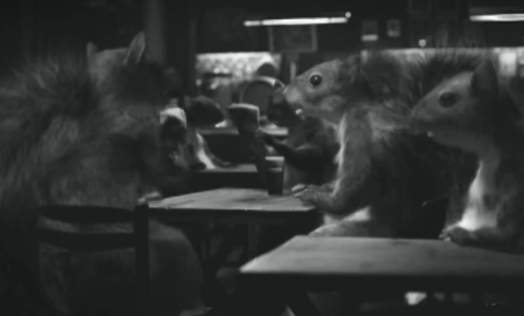 Švankmajer bábanimációit itt a mókusok kocsmájában idézi meg.