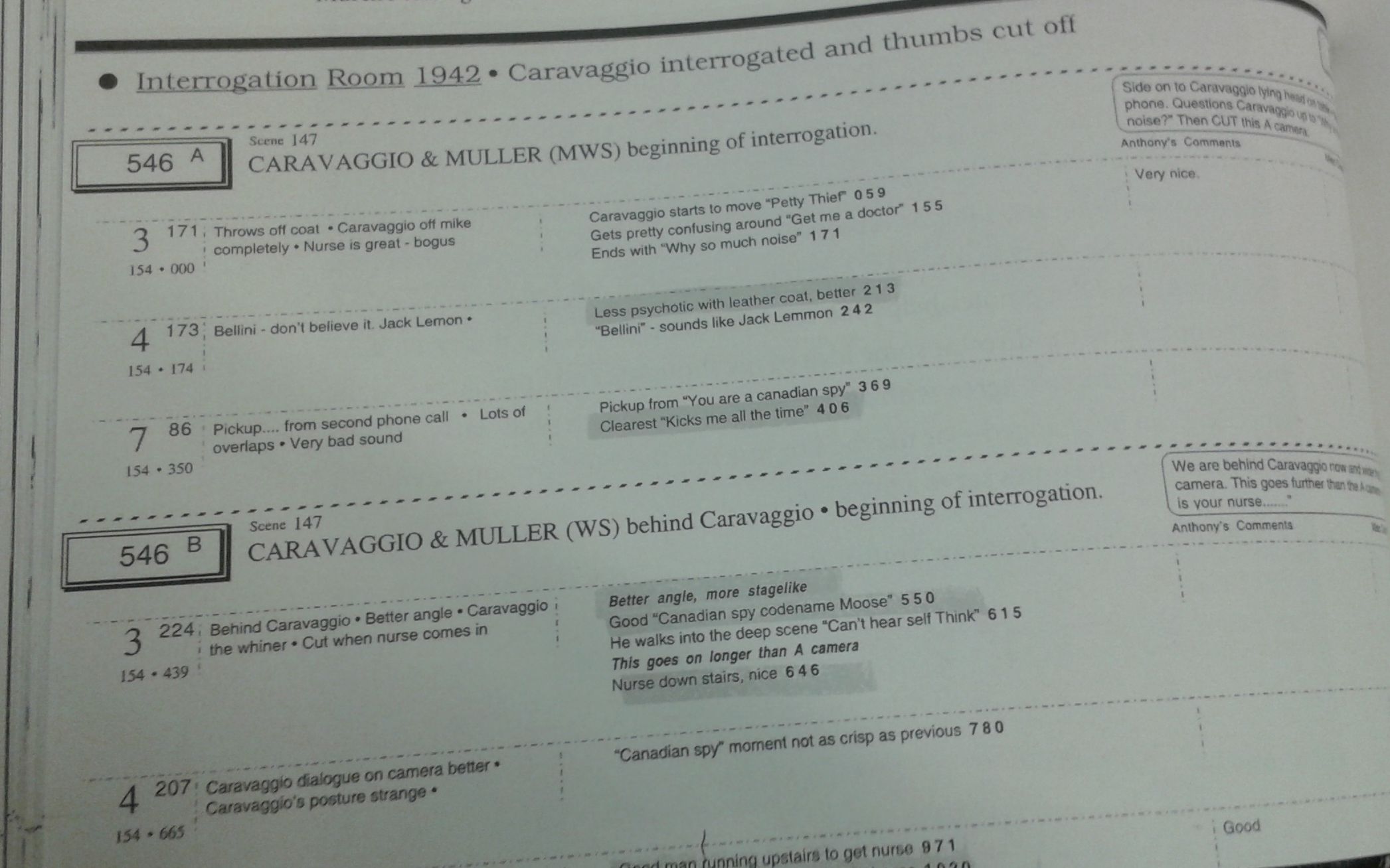 Egyébként erről a jelenetről beszélve Murch azt emelte ki, hogy a hangok mennyire fontosak voltak a hatás fokozásánál. Amikor a német tiszt arról beszél, hogy levágja Caravaggio egyik ujját, akkor a háttérzajok egy pillanatra teljesen elnémulnak.