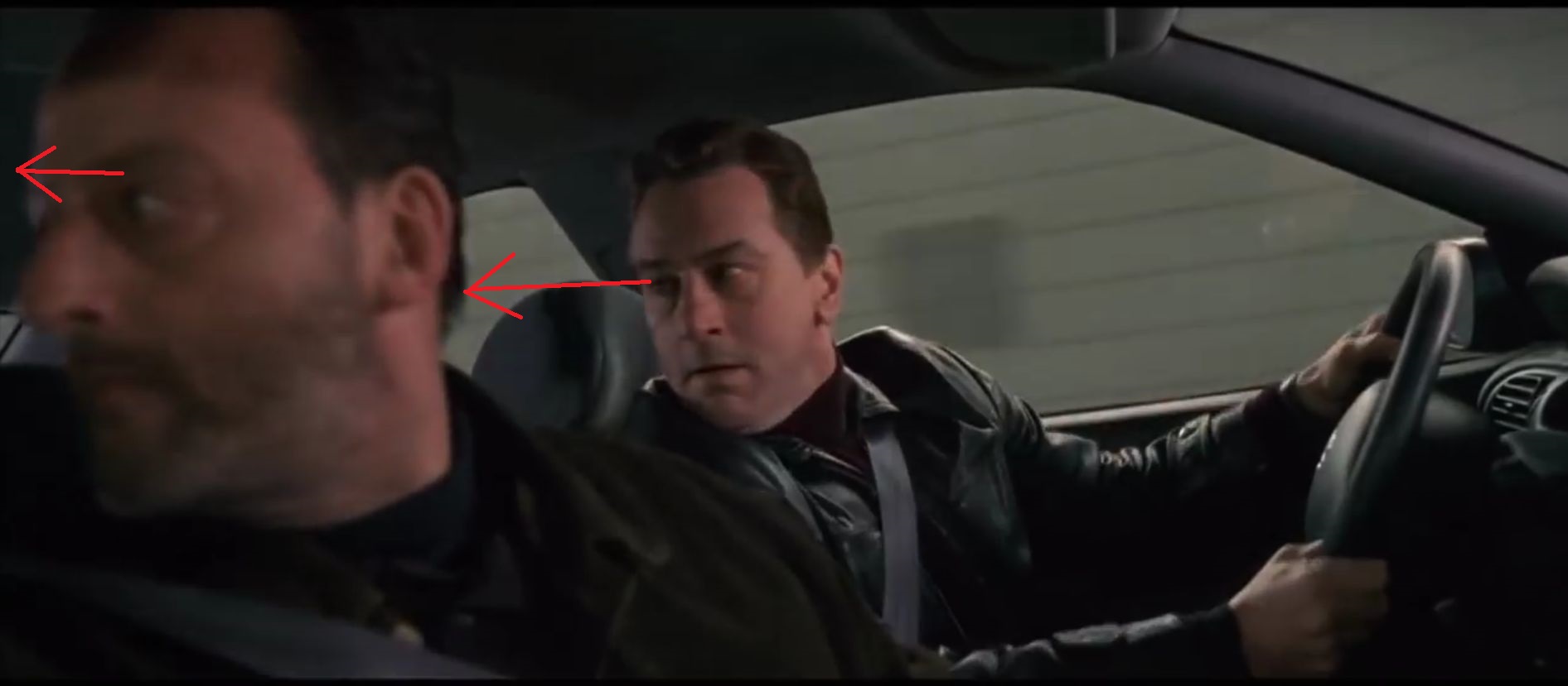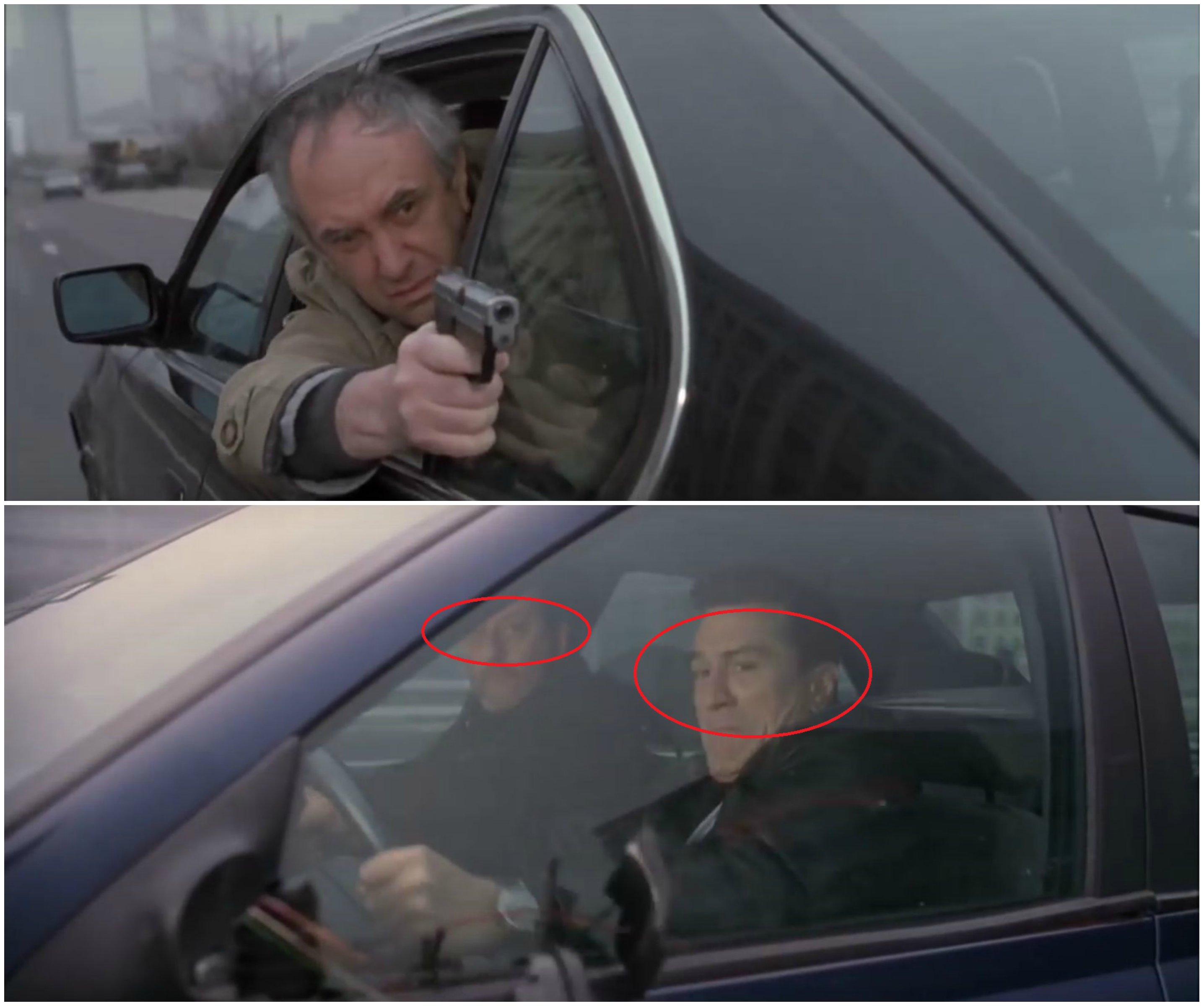 A De Niro/Reno páros vicces-nézését még egyszer játszotta ki Frankenheimer, amikor az alagútban felborítottak véletlenül egy civil autót.