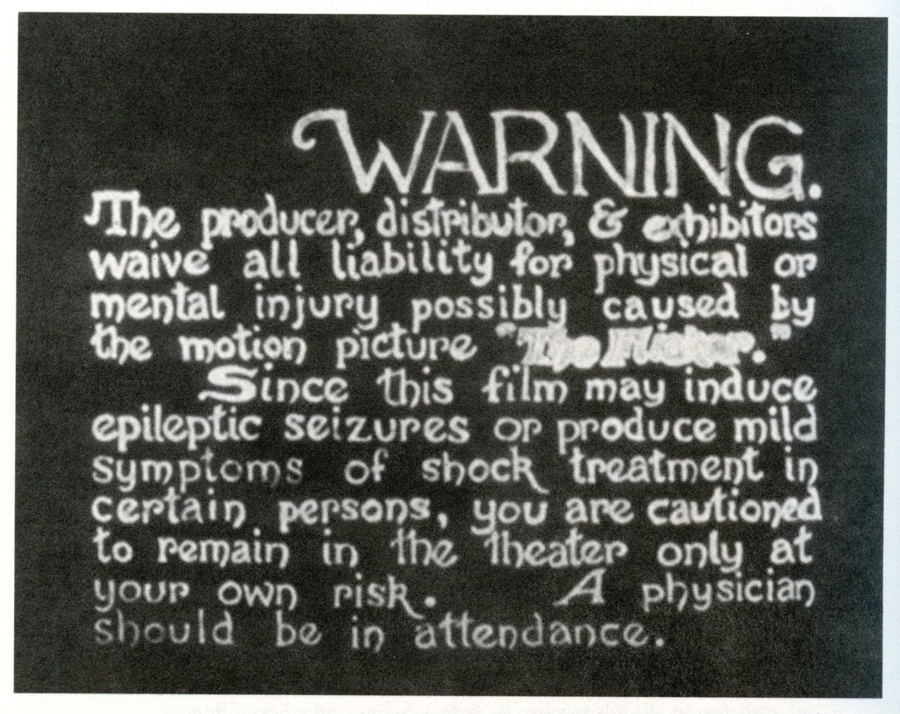 Ezzel a felirattal indult útjára a hatvanas években az úgynevezett flicker (vagyis villogó) filmek avantgárd hulláma, olyan alkotókkal, mint Paul Sharits, Peter Kubelka vagy Malcolm LeGrice. Ezek a filmek szokták a legnagyobb felháborodást kiváltani a nézőkből, még azokból is, akik nem szenvedtek el tőlük sokk terápiára emlékeztető agyi sérüléseket. Tény, hogy ezek a kísérlet filmek rászolgáltak rossz hírükre.