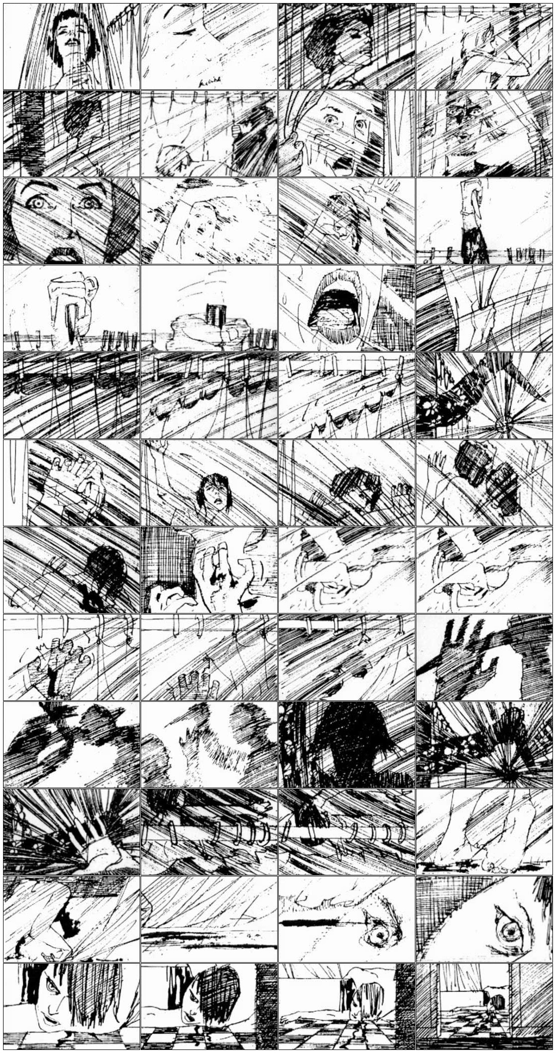Ha megnézzük a jelenetet, döbbenetes mennyire követi az elkészült film a rajzolt tervet.
